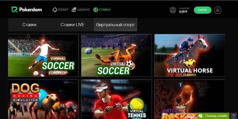 Букмекерская контора PokerDom имеет одно отличительную особенность – здесь можно заключать пари на самые различные события в мире спорта, при этом как их до начала, так и непосредственно во время прохождения мероприятия. Использовать данное программное обеспечение способен может даже начинающий беттер, так как оно максимально удобное и логически понятное, а также предоставляет доступ свыше, чем к 3000 рынков ставок, в том числе: